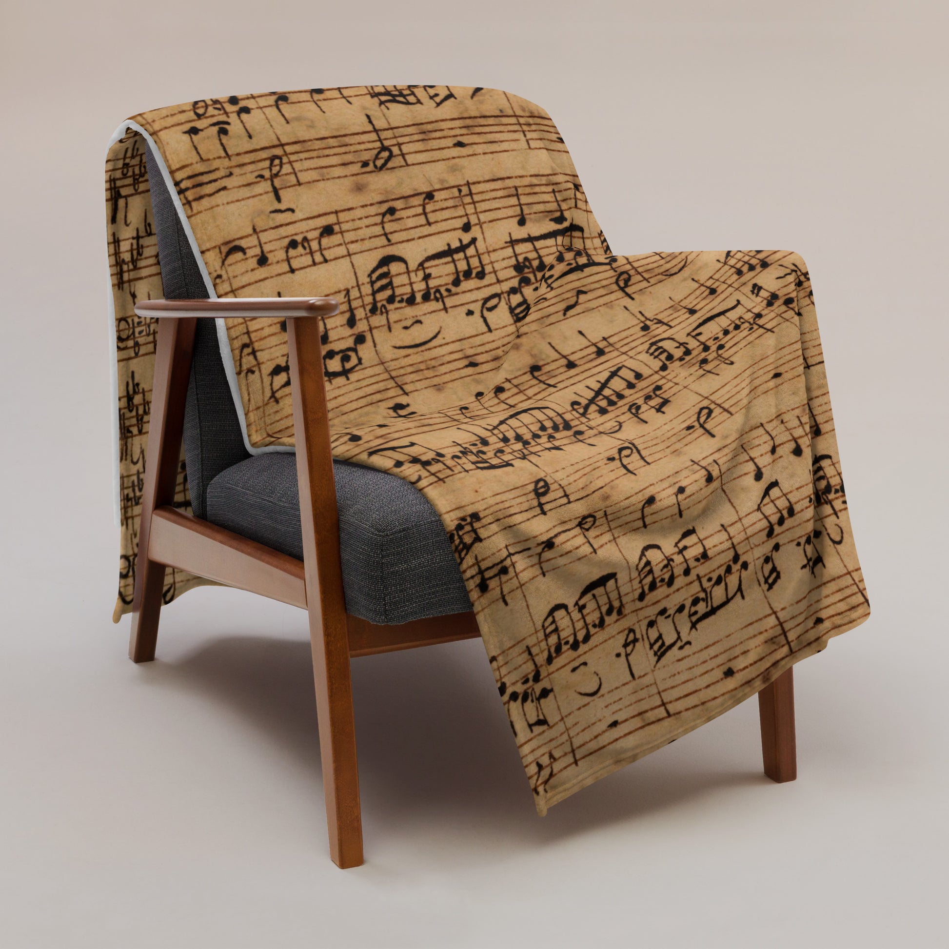 Fühlen Sie, dass Ihrem Zuhause ein auffälliges, aber praktisches Designelement fehlt? Lösen Sie dieses Problem mit einer weichen, seidig-touch Wurfdecke, die ideal zum Entspannen auf der Couch an kühlen Abenden ist. Ausgestattet mit der ersten Seite von J. S. Bachs Manuskript BWV 654 "Schmücke dich, o liebe Seele"