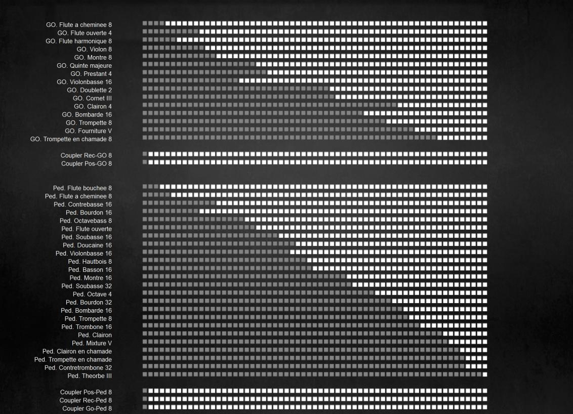Alle Register wurden mit und ohne Tremulanten aufgenommen, wo verfügbar, um das überzeugendste Tremulantenverhalten zu erzielen. Das Laden der authentischen tremulierten Register verbraucht jedoch eine große Menge RAM. Es ist möglich, stattdessen den künstlichen Tremulanten zu wählen, um RAM zu sparen (der Schalter befindet sich im Mixer-Tab).