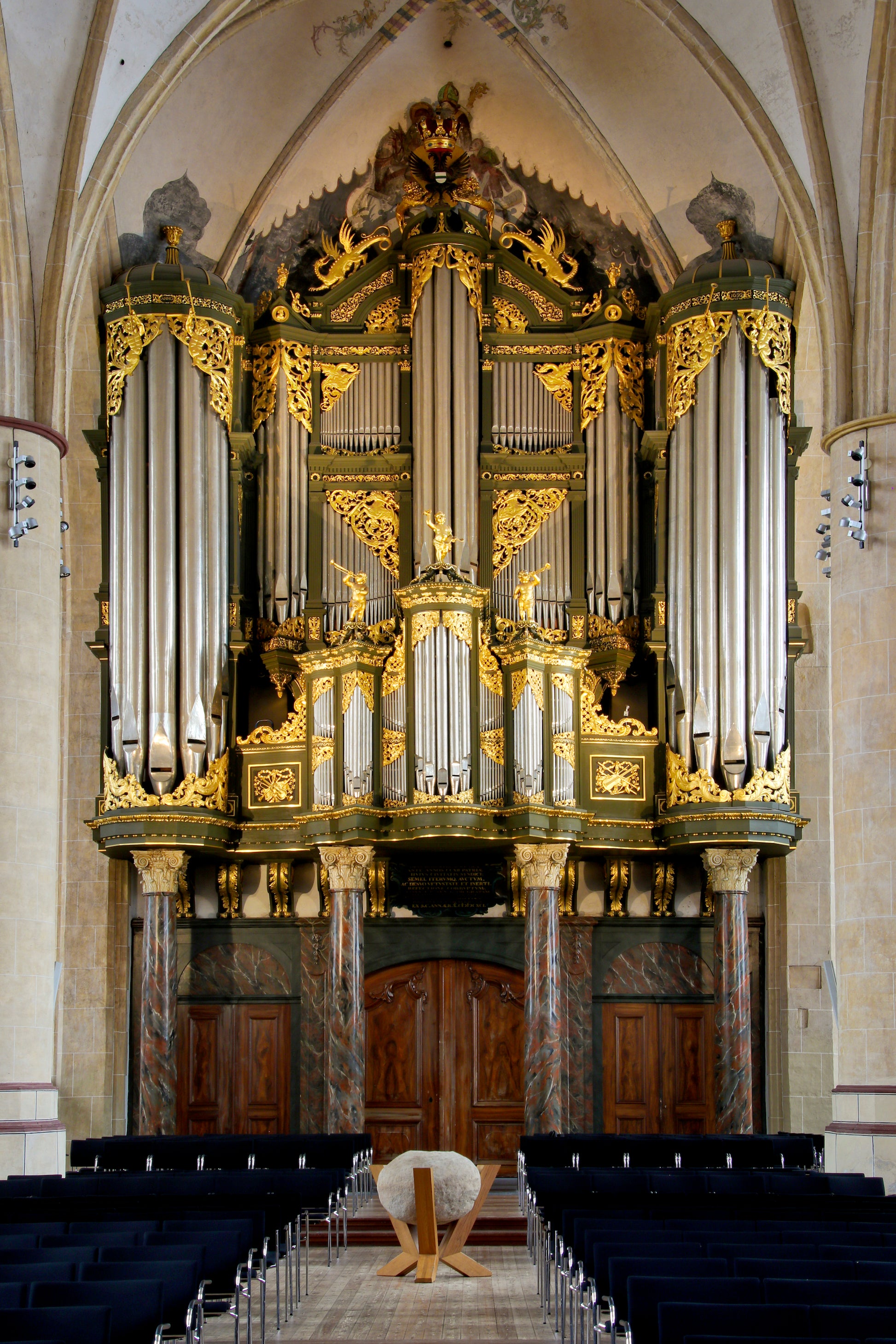 Das Orgelgehäuse zeigt das Jahr 1542, das sich auf einen Umbau der Orgel im Renaissance-Stil durch einen unbekannten Baumeister bezieht. Weitere Ergänzungen wurden um 1564 von Andreas de Mare und im Jahr 1627/28 von Anthoniund Adam Verbeeck. Von 1685 bis 1690 Jan Helman begann umfangreiche Arbeiten, einschließlich neuer Blasebälge, Tastaturen und Federkästen für das Hoofdwerk und das Pedal, aber er starb 1690 und ließ einige der Arbeiten unvollendet. Die Gemeinde kontaktierte dann Arp Schnitger, der die von Helman 1691/92 unvollendete Arbeit abschloss. Schnitger baute große Pedaltürme auf beiden Seiten der Orgel und platzierte die 32-Fuß Principal-Pfeifen in der Fassade.