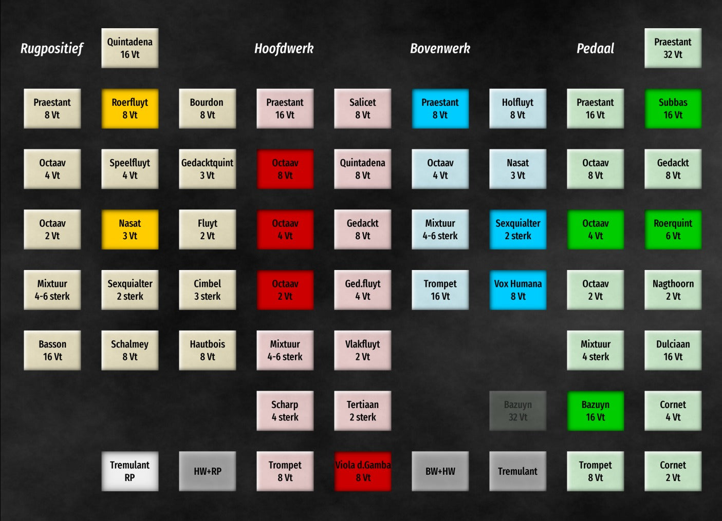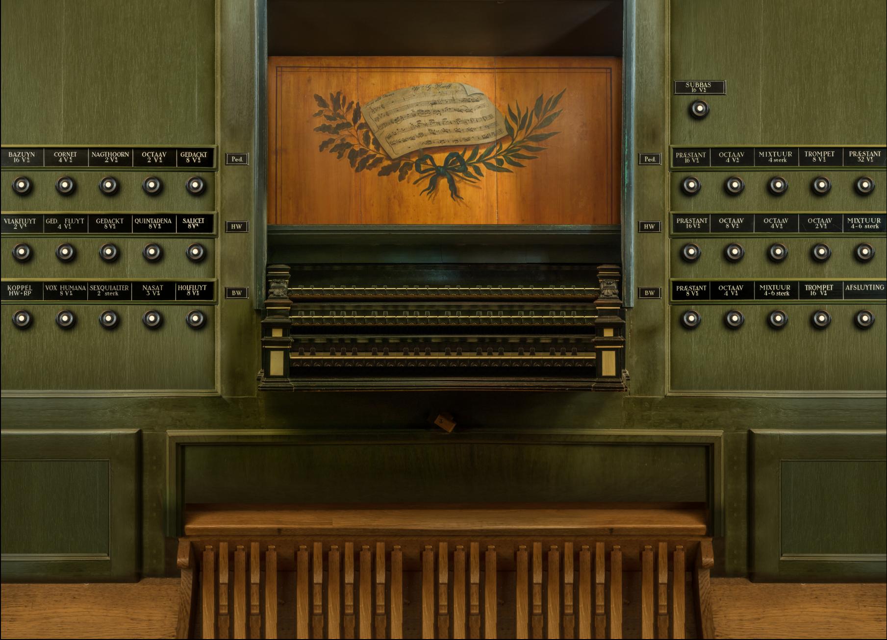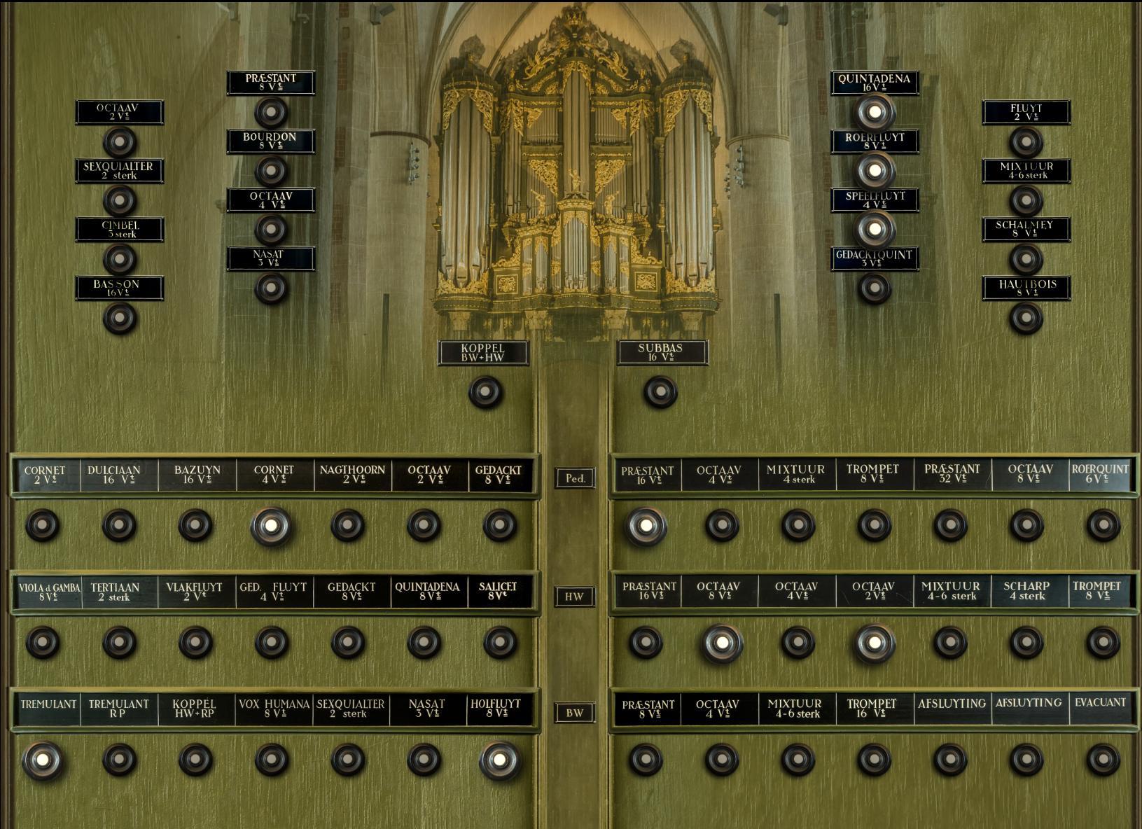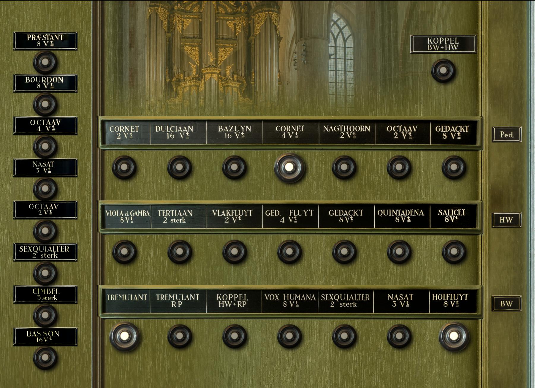 Bazuyn 32´ ist eine virtuelle Erweiterung. Sie wurde dem Sample-Set als Hommage an Herrn Cornelius H. Edskes (1925-2015) hinzugefügt. Die Registertaste befindet sich an der einfachen Jamb.