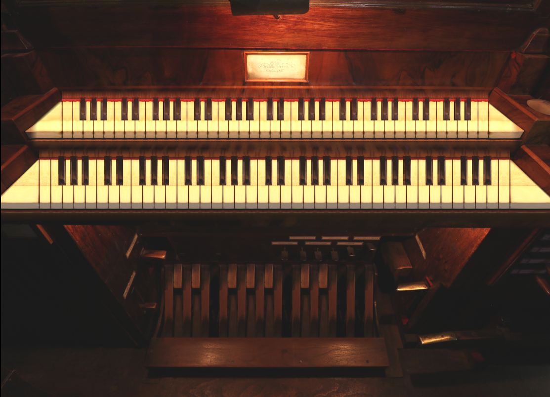 Das Organo Eco Manual scheint ebenfalls 6 Oktaven zu haben, aber die Contra-Oktave und auch die Große Oktave sind stumm, ziehen die Tasten eine Oktave nach oben. Der tatsächliche Umfang des Organo Eco beträgt 4 Oktaven c0–c4.