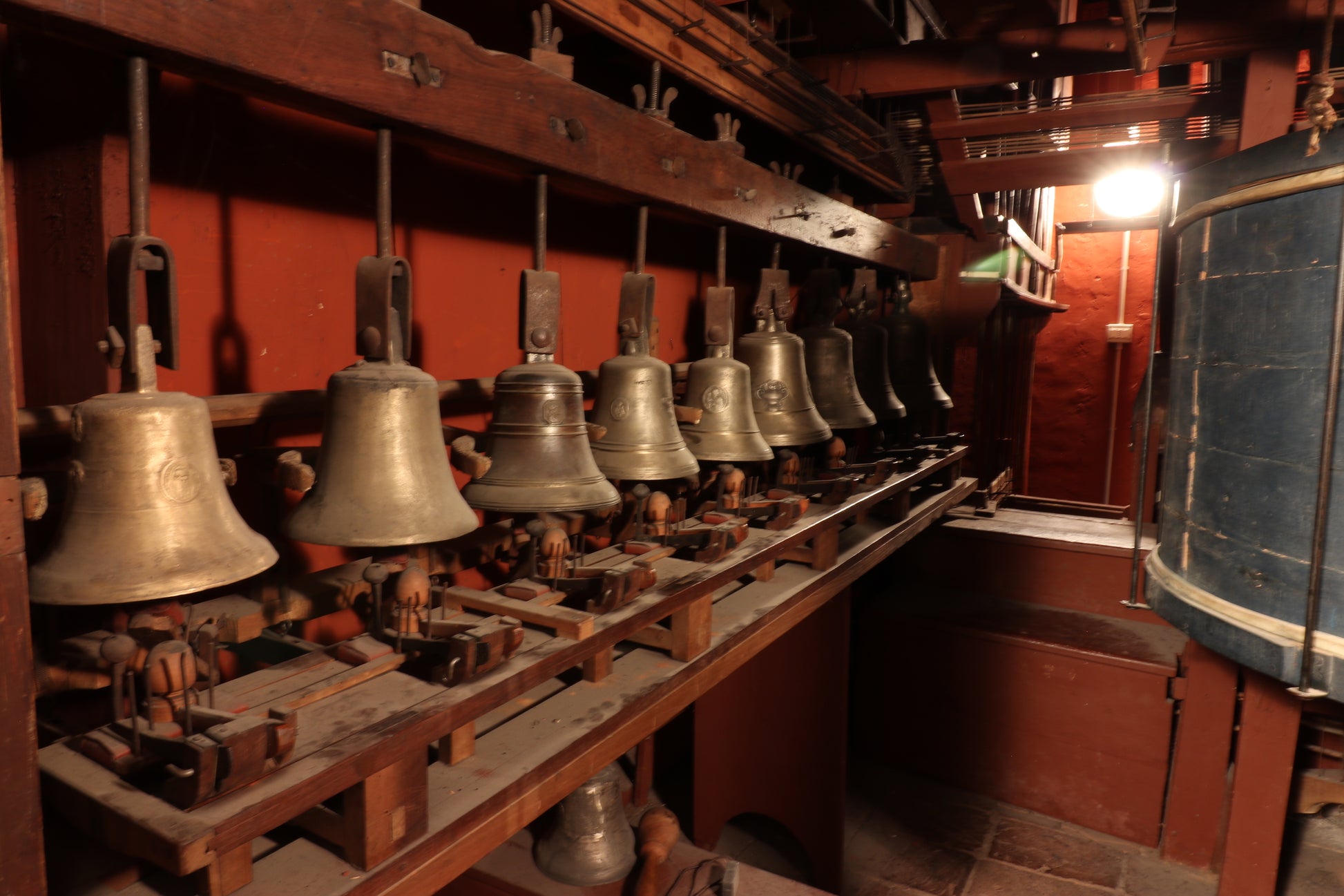 Die Orgel umfasst 9 diatonische Glocken (Halbtöne fehlen) und sie werden im Pedal in dieser Reihenfolge gespielt: C-D-E-F-G-A-Bb-B-c0. Die Glocken können auch von der mittleren Oktave der unteren Tastatur mit zusätzlichen Holzhammern (sanfterer Klang) bedient werden. Damit die Glocken betätigt werden können, muss der Campane-Stop aktiviert sein. Wo eine MIDI-geschwindigkeitsempfindliche Tastatur verfügbar ist, sind die Glockenklänge druckempfindlich.