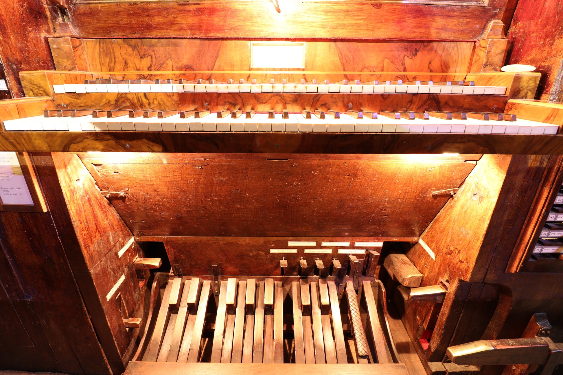 Der ursprüngliche Umfang der Tastaturen beträgt 6 Oktaven. Allerdings ist die tiefste Oktave des Grand'Organo kurz (Halbtöne fehlen). Die tiefste Oktave des Manuals ist die Contra-Oktave, eine Oktave unter dem üblichen tiefsten C auf Orgeln. Die ersten drei Tasten, CC, DD, EE sind stumm, ziehen nur die Tasten eine Oktave nach oben. Somit ist der tatsächlich klingende Umfang der Pfeifen des Grand'Organo FF, GG, AA-c4.