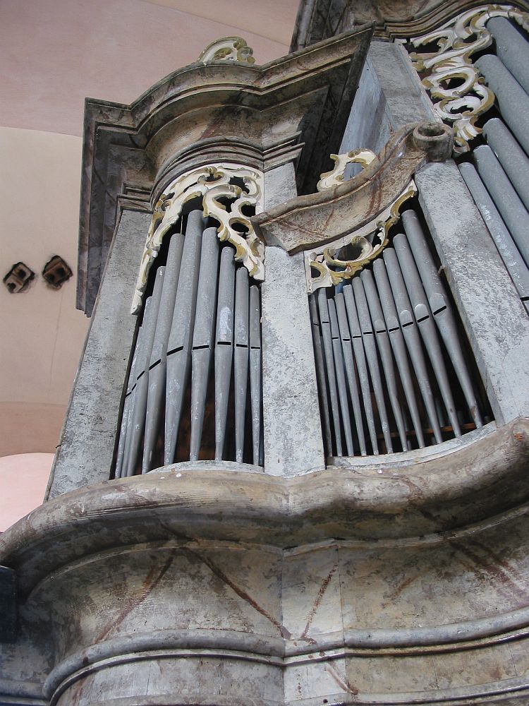 Rabštejn nad Střelou - unabhängig von seiner Bedeutung in der Geschichte - ist heute ein etwas verlassener Ort. Es ist einer dieser seltenen Orte, an denen man das Gefühl hat, der Zivilisation entkommen zu sein und kurz davor zu stehen, die Extremitäten der Erde zu erreichen. Vielleicht dank dieser Abgeschiedenheit ist das Instrument in seinem alten Zustand erhalten geblieben. Es hat nicht einmal einen elektrischen Bläser - tatsächlich gab es nie Strom in der Kirche selbst (in unserem virtuellen Modell haben wir optional künstliches Bläsergeräusch für diejenigen hinzugefügt, die es hören möchten). Andererseits ist dieses Instrument mehr als andere durch den langfristigen Mangel an regelmäßiger Pflege bedroht, und sein langsamer Verfall scheint unvermeidlich. Es ist keine Übertreibung zu sagen, dass wir vielleicht unter den letzten Menschen waren, die das Instrument in spielbarem Zustand fanden. Wir sind glücklich und vielleicht sogar stolz, dass wir seine klanglichen Eigenschaften für die Zukunft digital festhalten durften.