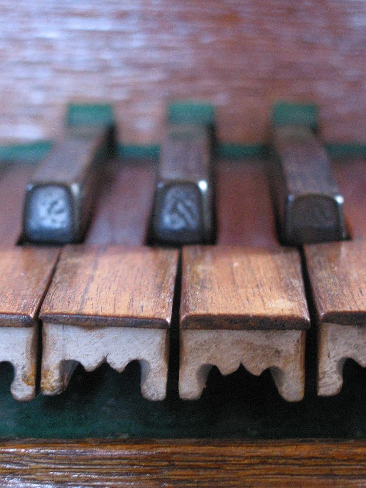 Das ursprüngliche Manual hat 4 Oktaven ohne das tiefste C#, D#, F#, G#. Der Pedalumfang beträgt 18 Töne. Die Erweiterung der Manuals und des Pedals wird in einem anderen ODF angeboten: Die Manuals erstrecken sich über 4,5 Oktaven (bis F), das Pedal hat 27 Töne (bis D).
