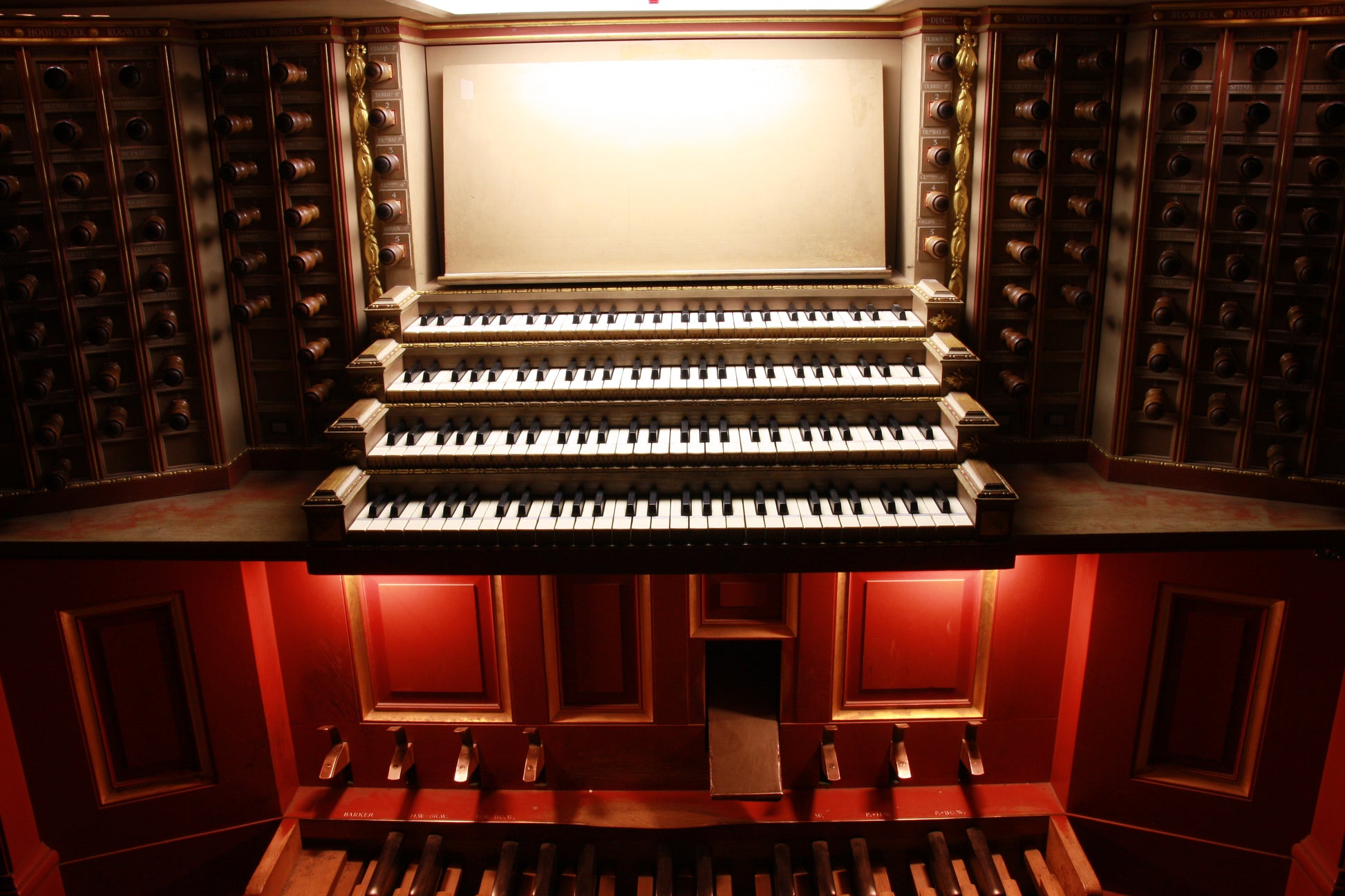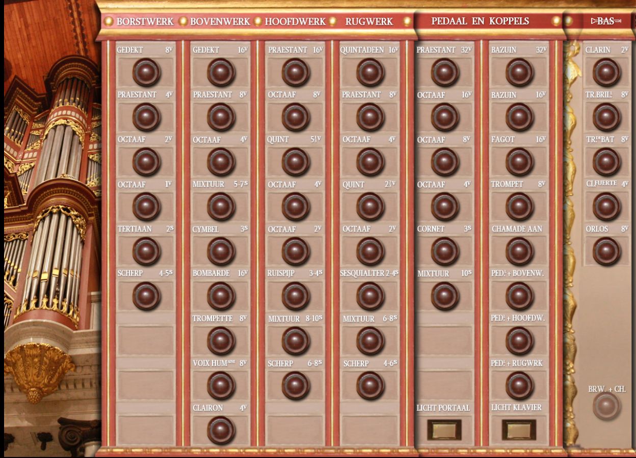 Die Orgel wurde so konzipiert, dass sie die Aufführung aller Orgel-Literatur ermöglicht. Tatsächlich ist die Fülle der Register, das vollständige Set horizontaler Zungen, die französische Art der Zungen, Streicher in einem Schwellkasten, eine reiche Auswahl an breit skalierten Mutationen, die vollständige Principal-Pyramide, das volle Spektrum an Registern im Pedal - es ist alles, wovon man träumen kann. Zunächst war ich über das Fehlen der französischen Oboe verwundert und hatte sogar daran gedacht, eine virtuell hinzuzufügen, aber dann überzeugte mich das Hören der CDs, die an der Rotterdamer Orgel von Herrn Hayo Boerema, dem titulierten Organisten, aufgenommen wurden, dass eine solche Ergänzung nicht nötig ist. Die Schwell-Trompete mit einem Nasard kann als überzeugender Ersatz verwendet werden. So kann ein breites Spektrum an Orgel-Literatur von der Renaissance, dem Barock, der Romantik bis hin zur modernen Zeit angemessen auf dem Instrument aufgeführt werden.