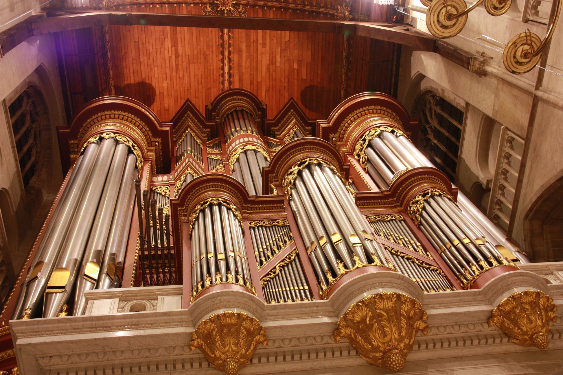 Ein auffälliges Merkmal des Instruments sind die mehrstimmigen Principal-Register. Praktisch alle Principals und Oktaven 16', 8', 4' aller Abteilungen bestehen aus mehr als einem unisono klingenden Register. Die Orgel wurde so konzipiert, dass sie die Aufführung aller Orgel-Literatur ermöglicht. In der Tat, die Fülle der Register, das vollständige Set horizontaler Zungen, die französische Art der Zungen, Saiten in einem Schwellkasten, eine reiche Auswahl an breit skalierten Mutationen, die vollständige Principal-Pyramide, das volle Spektrum an Registern im Pedal - es ist alles, wovon man träumen kann.