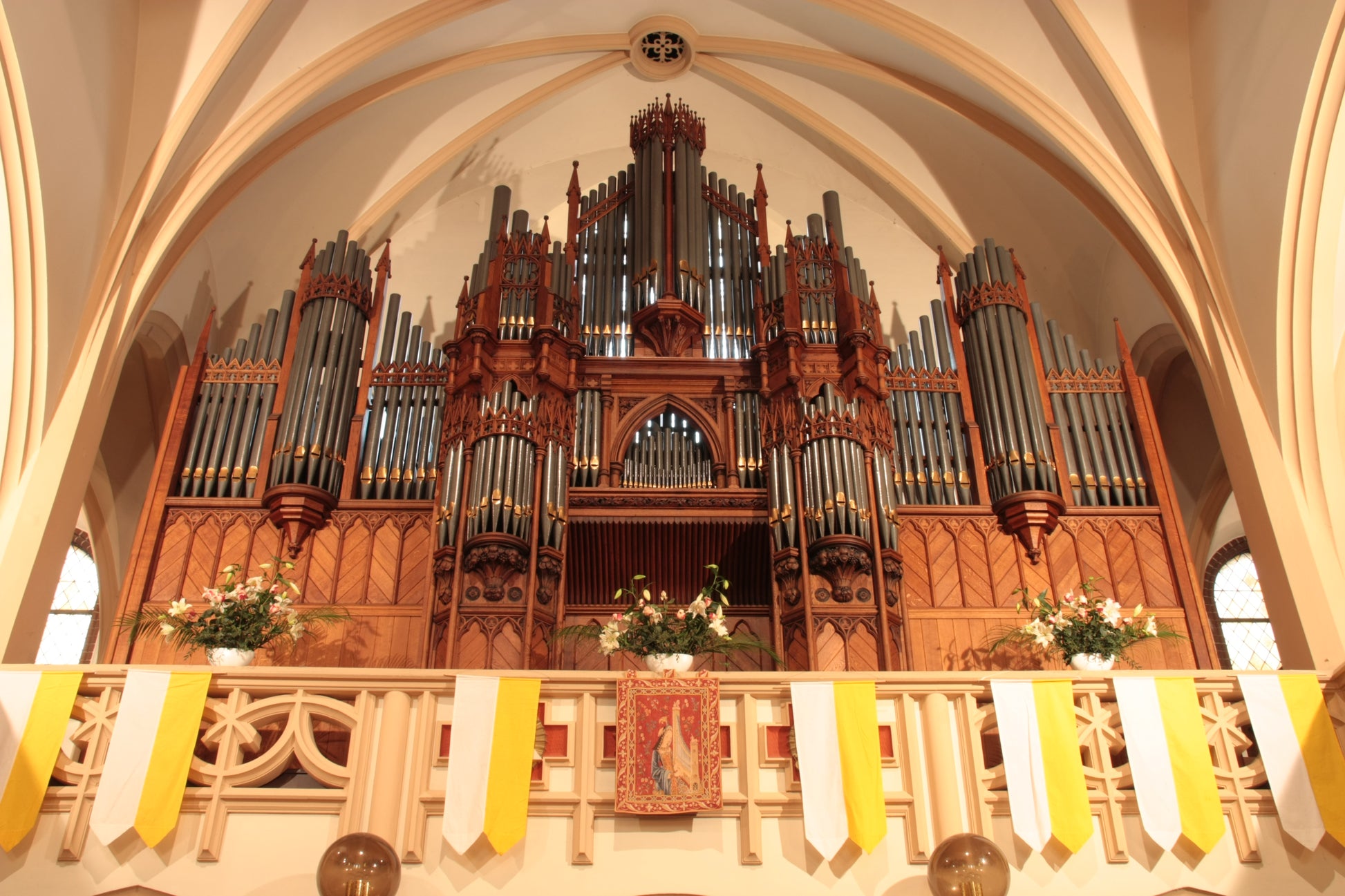 La liturgia anglicana richiede l'organo per supportare il canto congregazionale, incluso l'accompagnamento dei famosi cori di ragazzi e ragazze britannici, poiché sottolinea il loro canto con voci che sono uniche, dinamiche, colorate, altamente differenziate, ma che formano anche un insieme coerente. La flessibilità dell'organo inglese è anche in accordo con l'uso secolare degli organi, che divenne popolare nell'era vittoriana. Le grandi Town Halls iniziarono a installare organi per presentare concerti di musica organistica romantica e grandi composizioni orchestrali. Una fusione di gusti tedeschi e francesi fu adattata in Inghilterra per formare un tipo di organo che potesse essere utilizzato sia per scopi liturgici che concertistici. L'organo di Burton (ora Berlino) ha più di 2000 canne, 48 registri sonori su 3 manuali e un pedale.