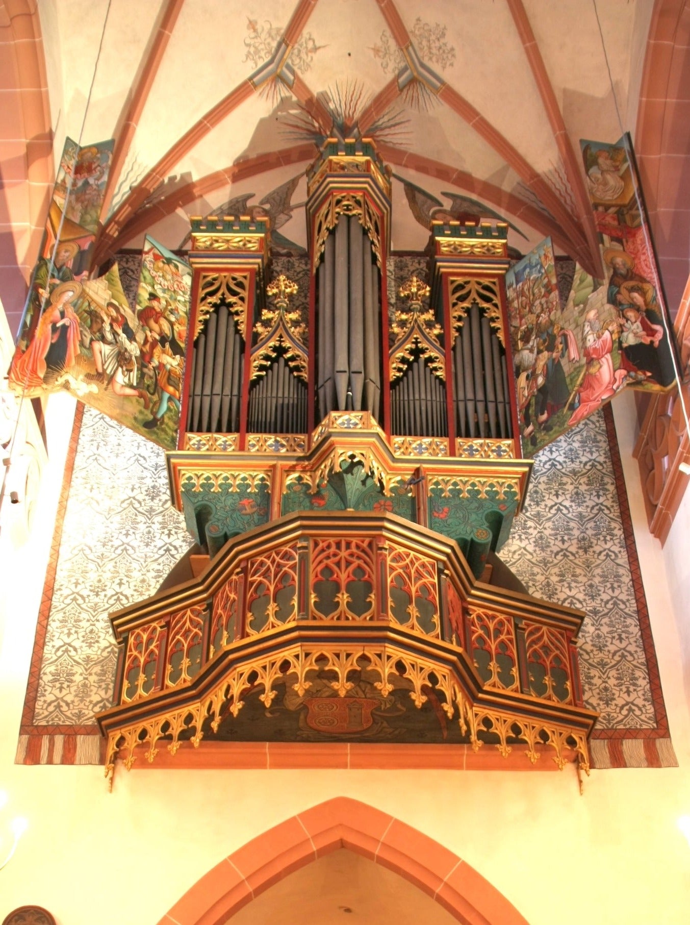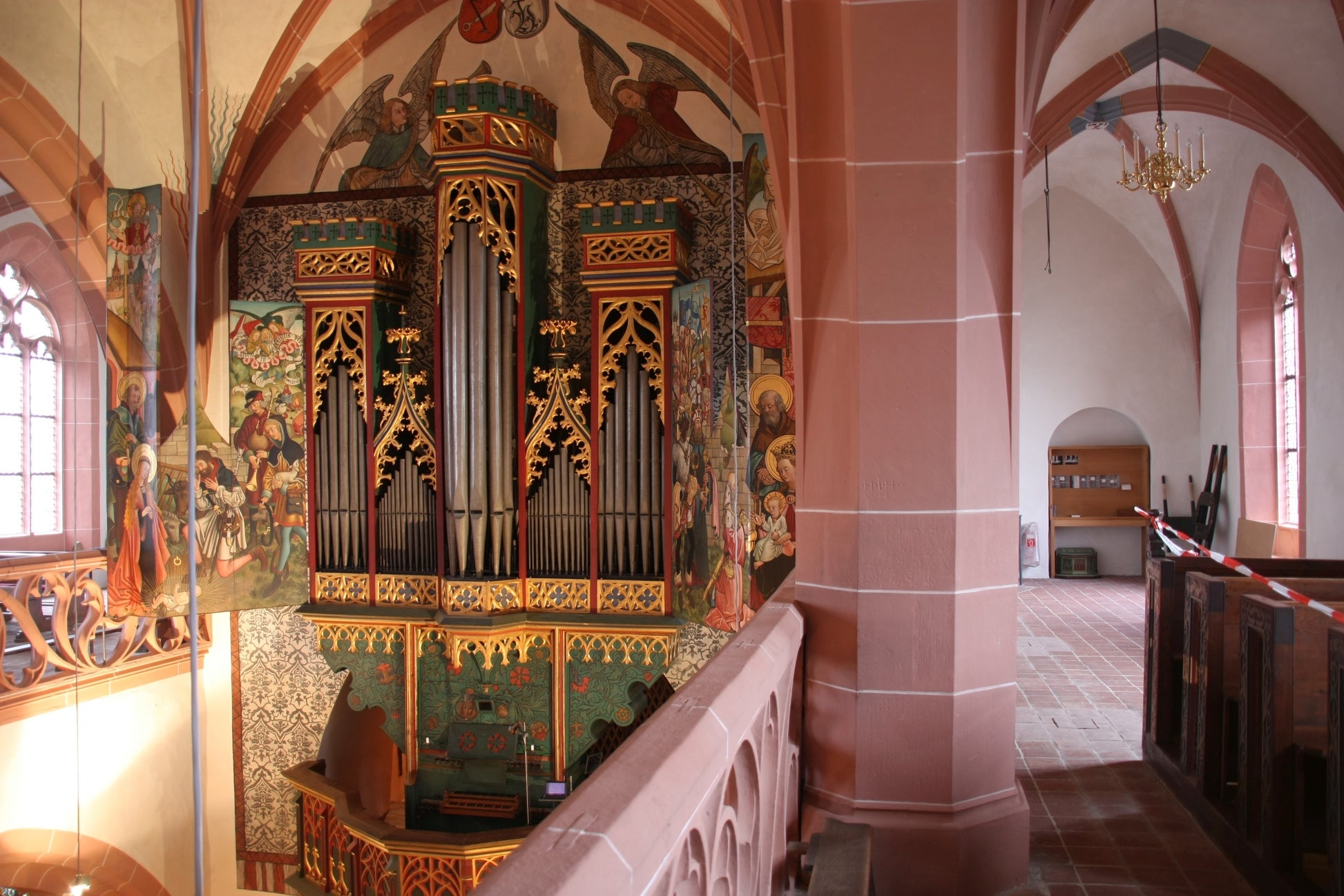 L'organo è stato ricostruito da Johann Kirchner nel 1652 e successivamente modificato diverse volte. Nel contratto per la riparazione dell'organo nel 1710, viene menzionato per la prima volta il Positif di 6 registri, anche se presumibilmente era già stato aggiunto da Kirchner. Il pedale indipendente è stato probabilmente aggiunto nel 1722. Il restauro effettuato nel XIX secolo è notevole, perché è così diverso da quelli eseguiti su molti altri organi storici di quel periodo. Quando il barone John Sutton scoprì questo strumento durante uno dei suoi viaggi in Europa, rimase affascinato dalla sua origine gotica e fornì i fondi per "restaurare" lo strumento al suo stato del 1500 (almeno secondo le percezioni romantiche e l'istoricismo della metà del XIX secolo). La parte strumentale è stata restaurata da Louis Benoit Hooghuys, e il case (inclusi i lati dipinti) è stato restaurato da August Martin de Fürth.
