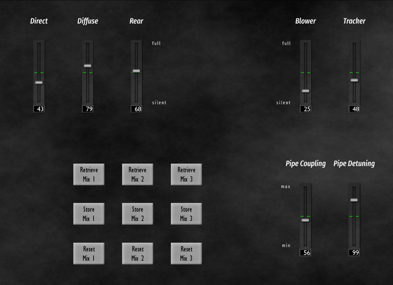 La registrazione è stata effettuata vicino al case dell'organo. I campioni contengono ancora un po' di riverberazione della chiesa, sebbene il suono diretto delle canne prevalga. È approssimativamente la registrazione della posizione dell'organista. Mentre i campioni totalmente asciutti possono suonare grezzi se utilizzati senza alcuna riverberazione aggiuntiva, questa variante "umida" del set di campioni può essere preferita da coloro che amano acustiche più asciutte per la pratica domestica. Può suonare piuttosto naturale nell'ambiente domestico.