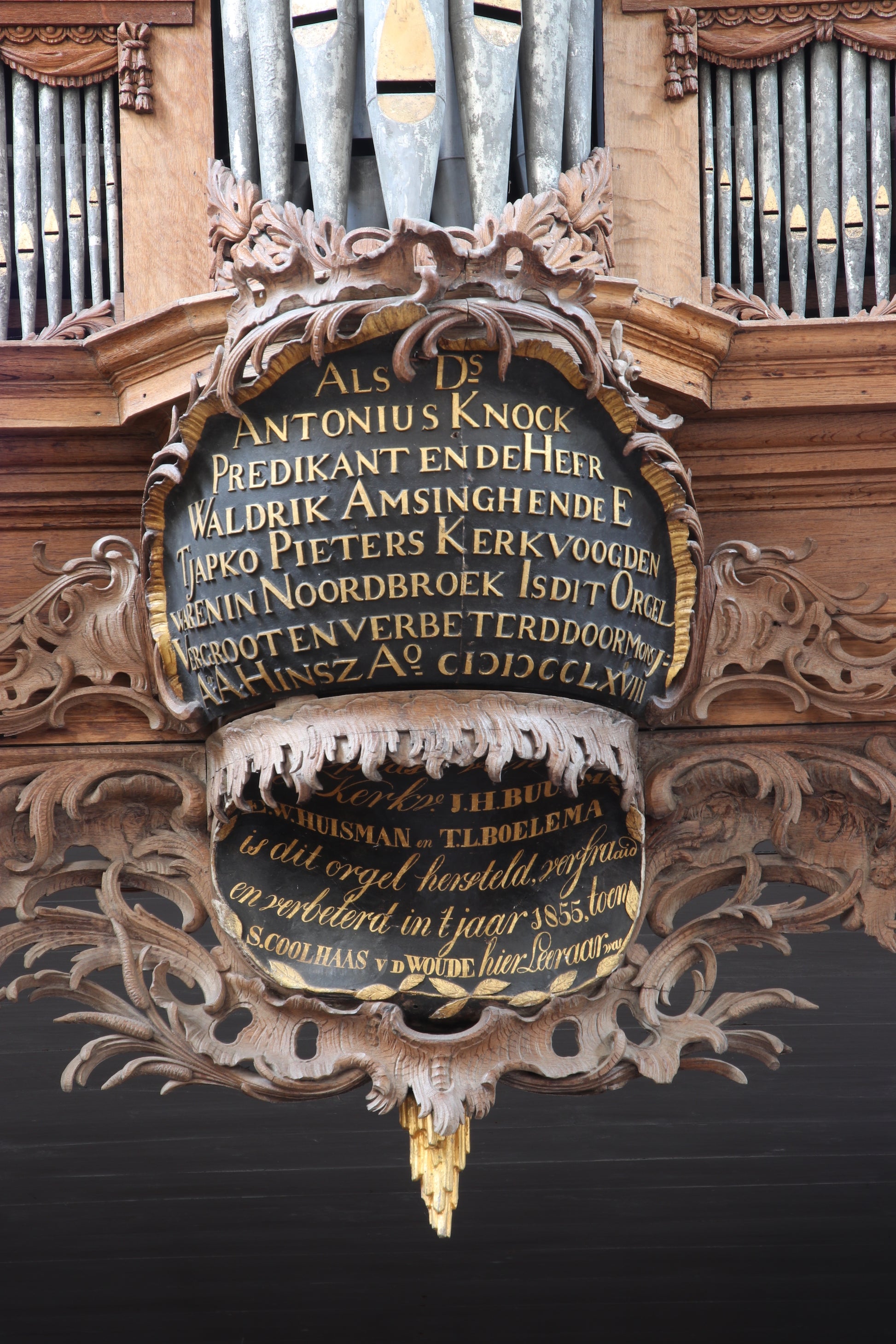 Albertus Antoni Hinsz ha effettuato ampie riparazioni nel 1752. Poi, nel 1768, fornì nuove casse d'aria per le divisioni manuali con un'ottava di basso cromatica. Aggiunse la Quintadena 16, la Vox humana 8 e la Dulciaan 8. Espanse anche il corpo dell'organo e cambiò le tastiere dello strumento per adattarsi ai tubi e alle note aggiunti.