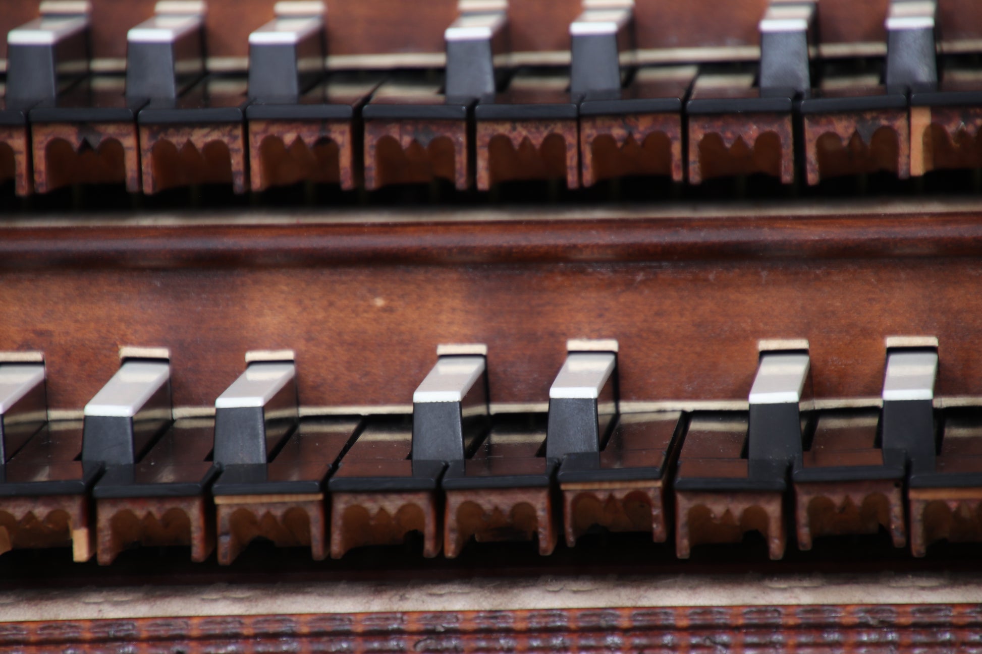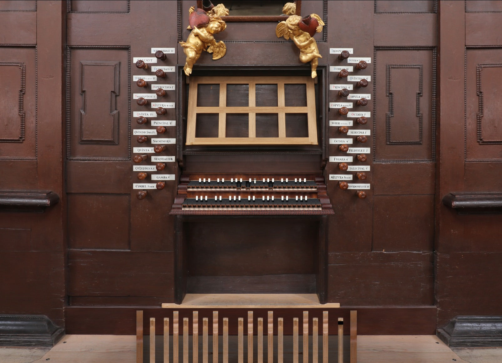 La gamma originale delle tastiere è di 45 tasti (C,D,E,F,G,A-c3), estesa in Hauptwerk a d3 tramite un interruttore dedicato sul mixer. Anche il basso C#, D#, F#, G# è stato aggiunto. La gamma originale della divisione dei pedali è di 18 tasti (C,D,E,F,G,A-a0), ma suona solo i 12 toni più bassi. Il pedale è esteso a c1 completamente cromaticamente nel set di campioni come opzione, impostabile tramite l'interruttore dedicato nella scheda mixer. In Hauptwerk, l'organista ha la possibilità di suonare la gamma originale o la gamma estesa, a seconda della scelta personale.