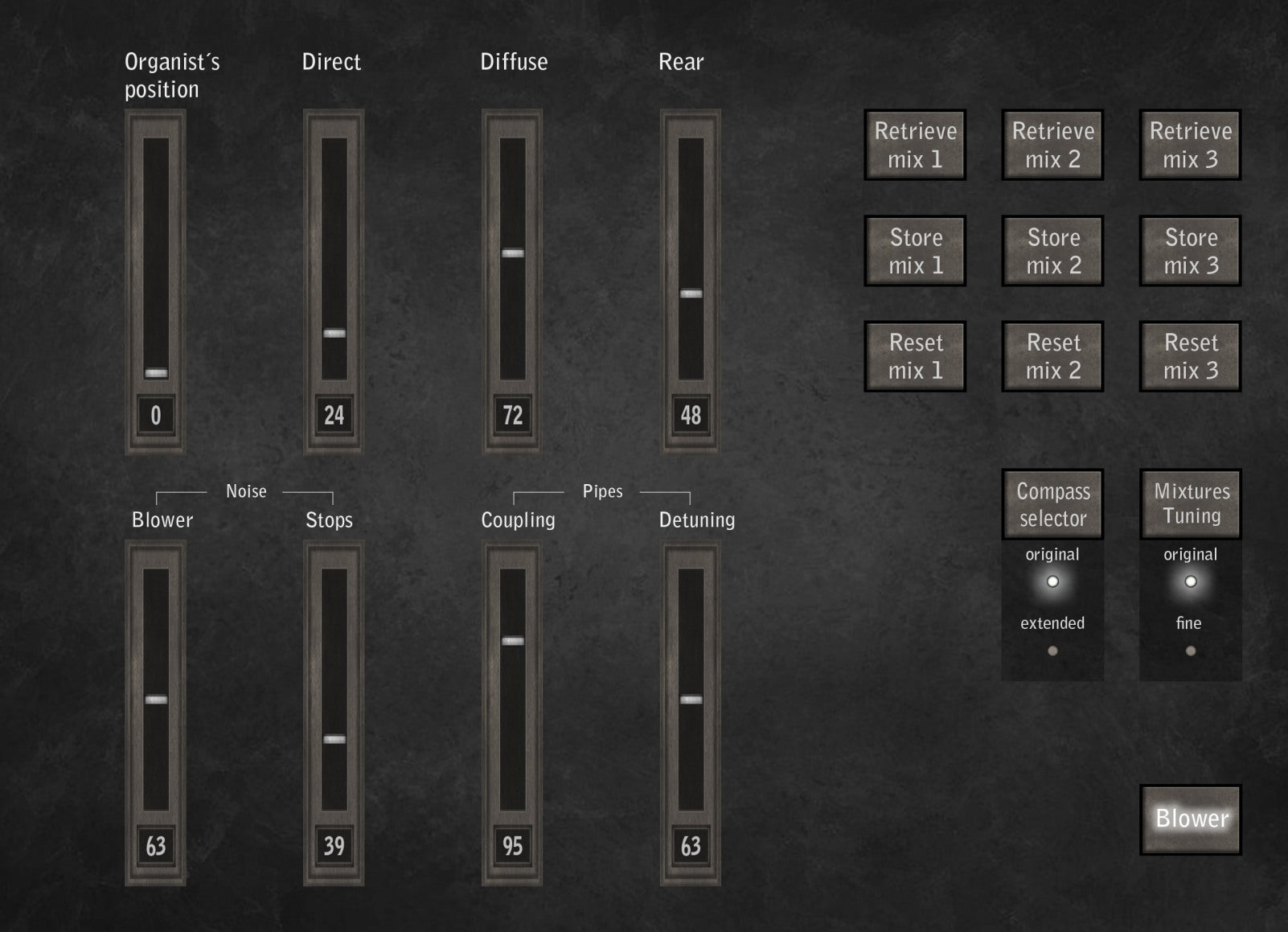 Il set di campioni è offerto in 8 canali. Sei canali possono essere utilizzati per formare un set di campioni surround. Ci sono canali diretti, che presentano il suono dell'organo di fronte al case dell'organo. La prospettiva diffusa cattura il suono nella chiesa, più lontano dall'organo. La prospettiva posteriore è progettata per gli altoparlanti posteriori dell'impianto audio. Le prospettive possono essere mescolate liberamente per ottenere qualsiasi posizione di ascolto virtuale, o utilizzate separatamente - a seconda delle preferenze dell'utente. Un "mixer" dedicato è disponibile in Hauptwerk per mescolare il suono al livello desiderato.