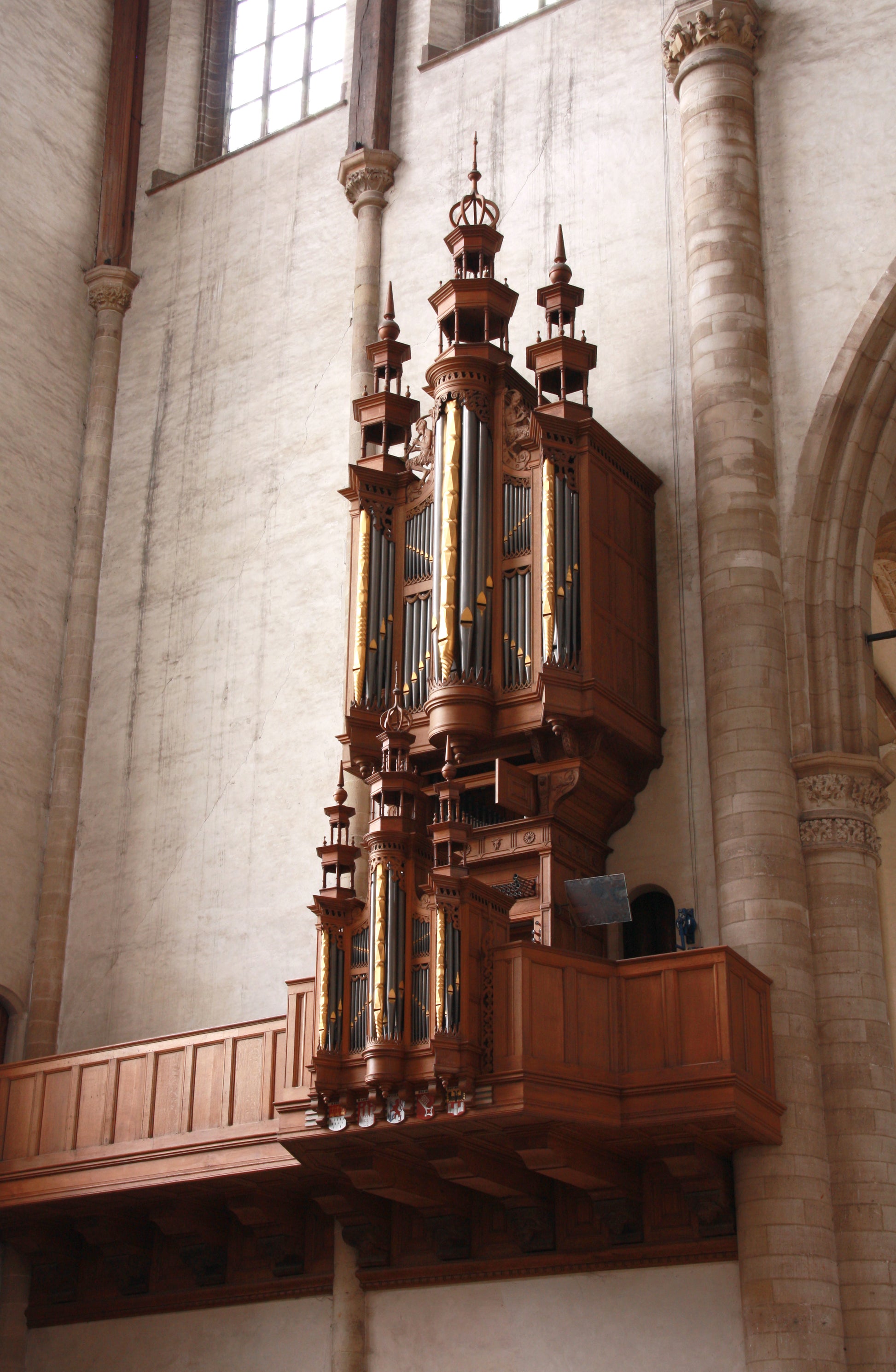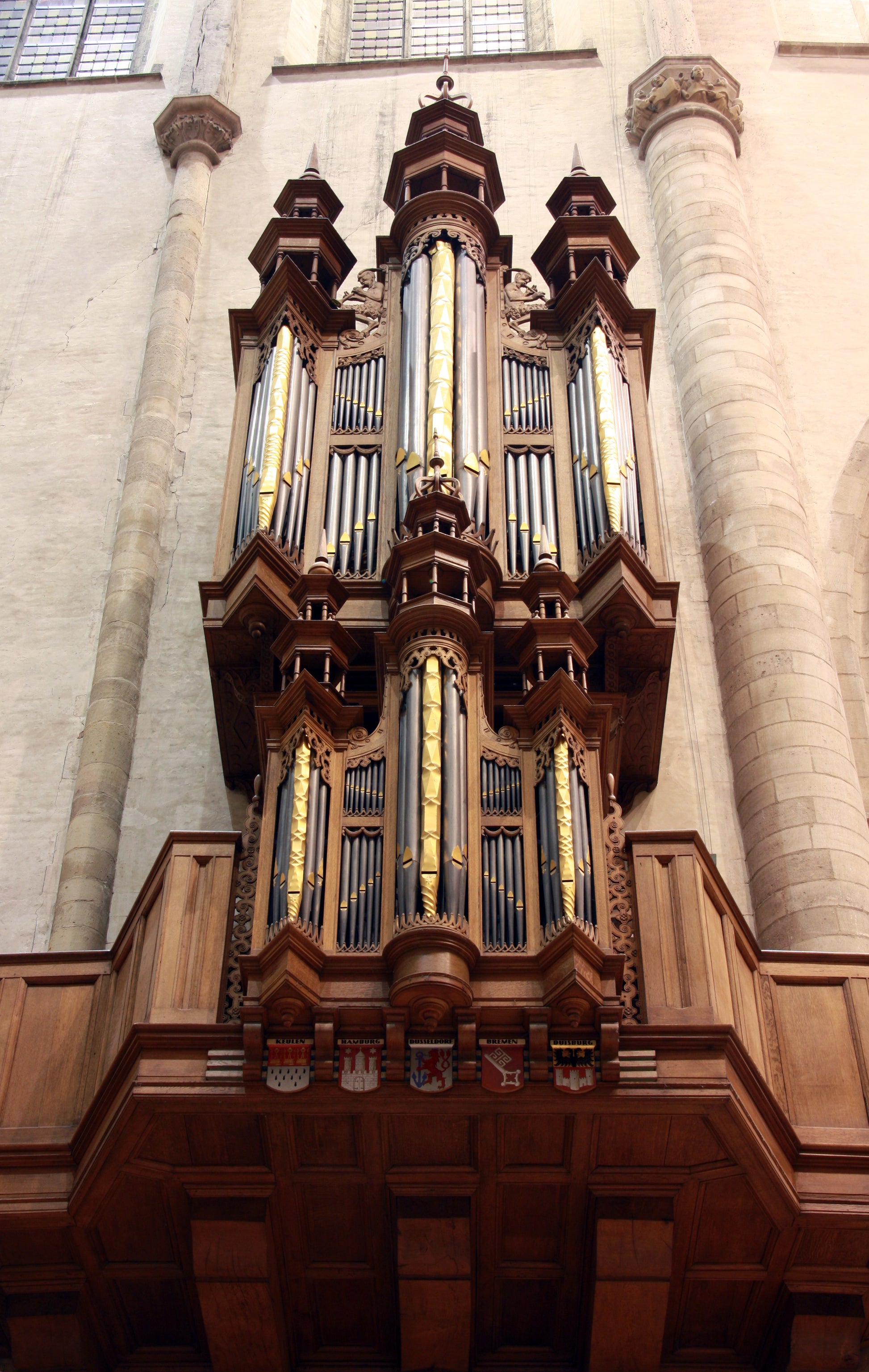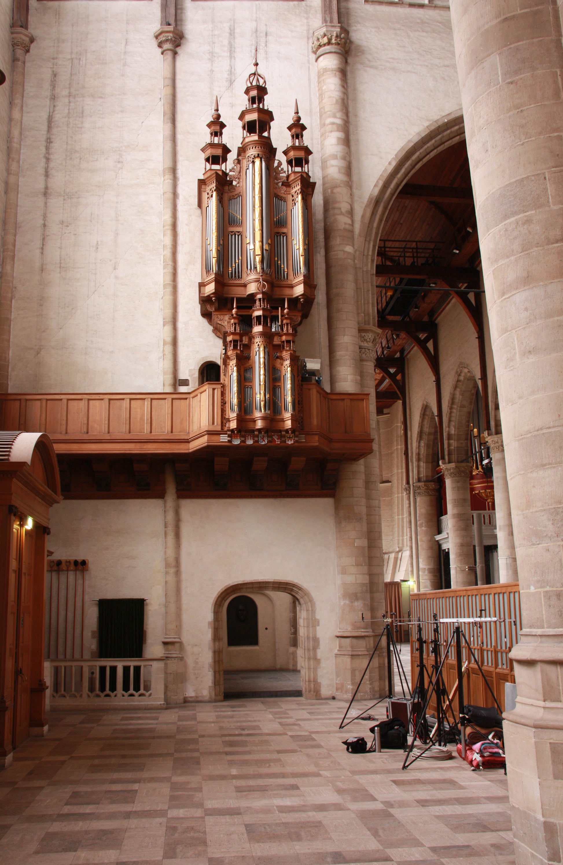 Originariamente, il corpo apparteneva a un organo di Henrick Niehoff (1539-1540), ma quell'istrumento è stato fuori uso per molto tempo. La compagnia di costruzione di organi Marcussen ha riempito questo corpo con un istrumento a 3 manuali. Il corpo principale dell'organo ospita un Hoofdwerk e un Pedaal e un piccolo Borstwerk sottostante. Un corpo Rugwerk più piccolo è stato aggiunto alla balaustra del balcone. L'ottava più bassa dello Spitsgedekt 16' si trova in una piccola stanza dietro l'organo.