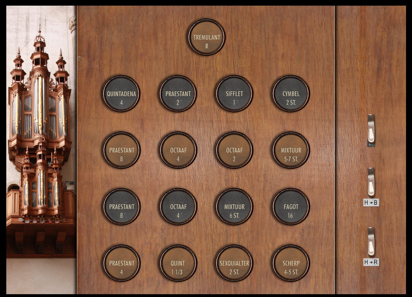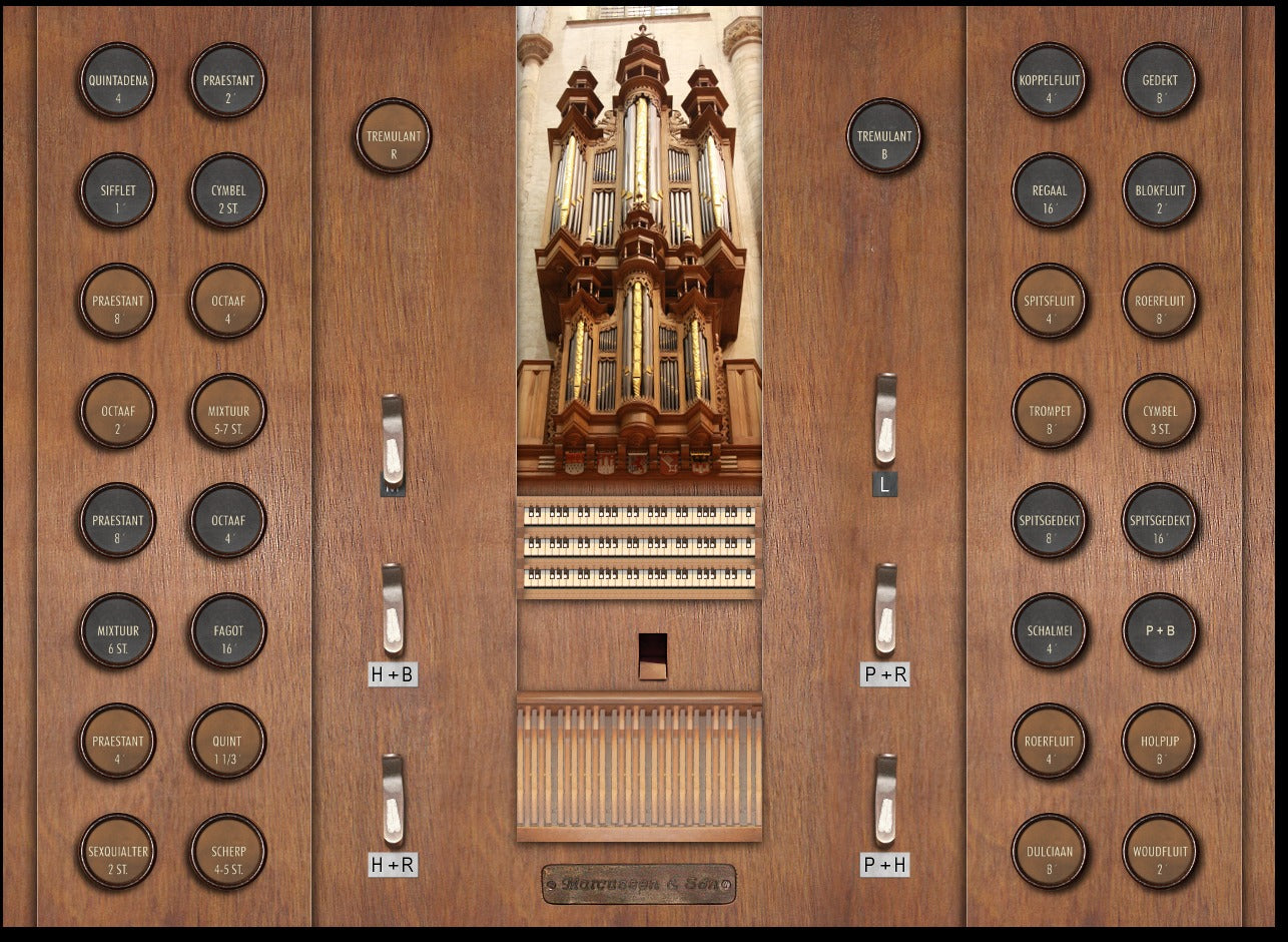 Il fratello minore e più antico dell'organo principale della galleria posteriore (che è disponibile anche come set di campioni per Hauptwerk) si trova nel transetto della stessa chiesa di San Lorenzo a Rotterdam (Paesi Bassi) ed è un esempio di eccellenza dell'organo europeo della metà del ventesimo secolo, negli anni successivi alla Seconda Guerra Mondiale.
