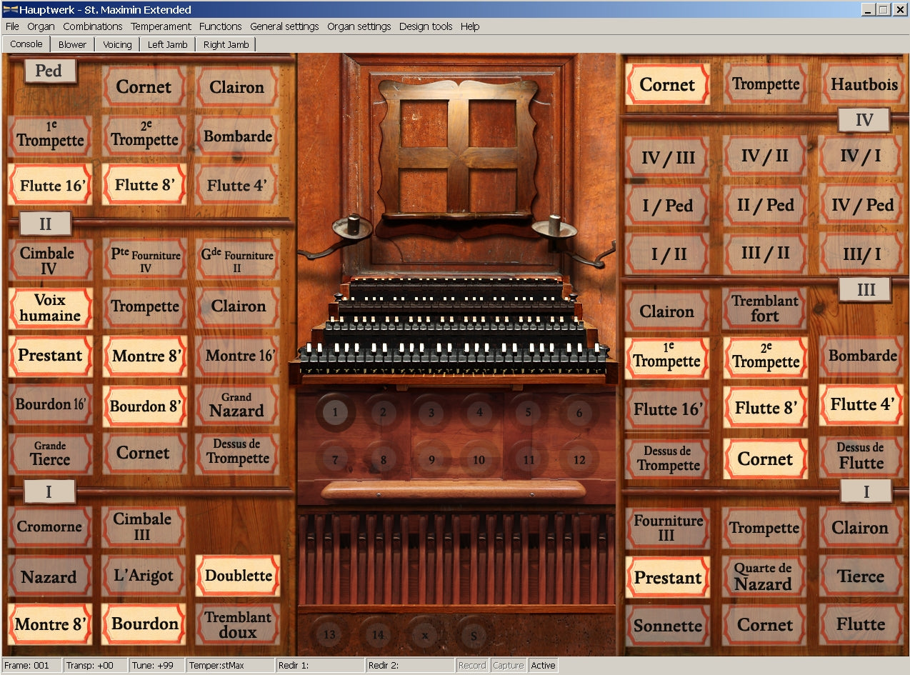 4-manuale strumento classico francese. Composizione: Grand Orgue, Positif, Récit, Raisonnance, Pedale.