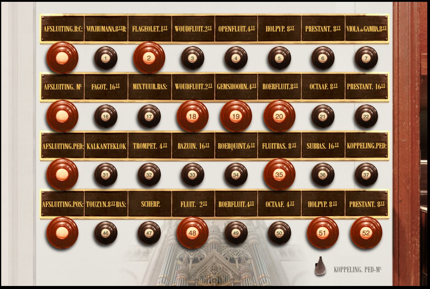 L'organo è ampiamente acclamato per il suo tono morbido e i suoi tremolanti espressivi che rendono lo strumento davvero adatto allo stile romantico delle composizioni, in particolare la musica romantica olandese (e post-romantica). Questa volta, registrare i registri tremolati è stato indispensabile per preservare il carattere speciale dello strumento. Pertanto, la maggior parte dei registri dei manuali I e III è inclusa anche con i registri tremolati registrati.