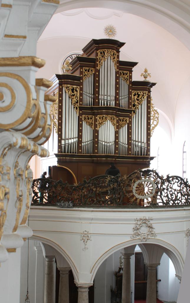 I tubi sono accordati in modo straordinariamente morbido, persino tenero, e così il suono risultante non è eccessivamente pungente o penetrante. Nonostante la pressione dell'aria più bassa, i tubi parlano con facilità e un attacco ben definito. La gravità del suono è raggiunta grazie al fondamento 16' del Hauptwerk, ulteriormente supportato dal fondamento 32' del Pedale. L'organo offre un'ampia gamma di voci di fondazione: principiali, flauti aperti e chiusi, flauti conici e a camino, corde e ance. Le mutazioni sono rappresentate da miscele, quinte larghe e strette, terze e Sesquialtera. In totale, ci sono 38 registri sonori. I registri accessori includono tremulanti a canale separati per ogni divisione, incluso il Pedale, accoppiatori e un Zimberlstern (Glöcklein).