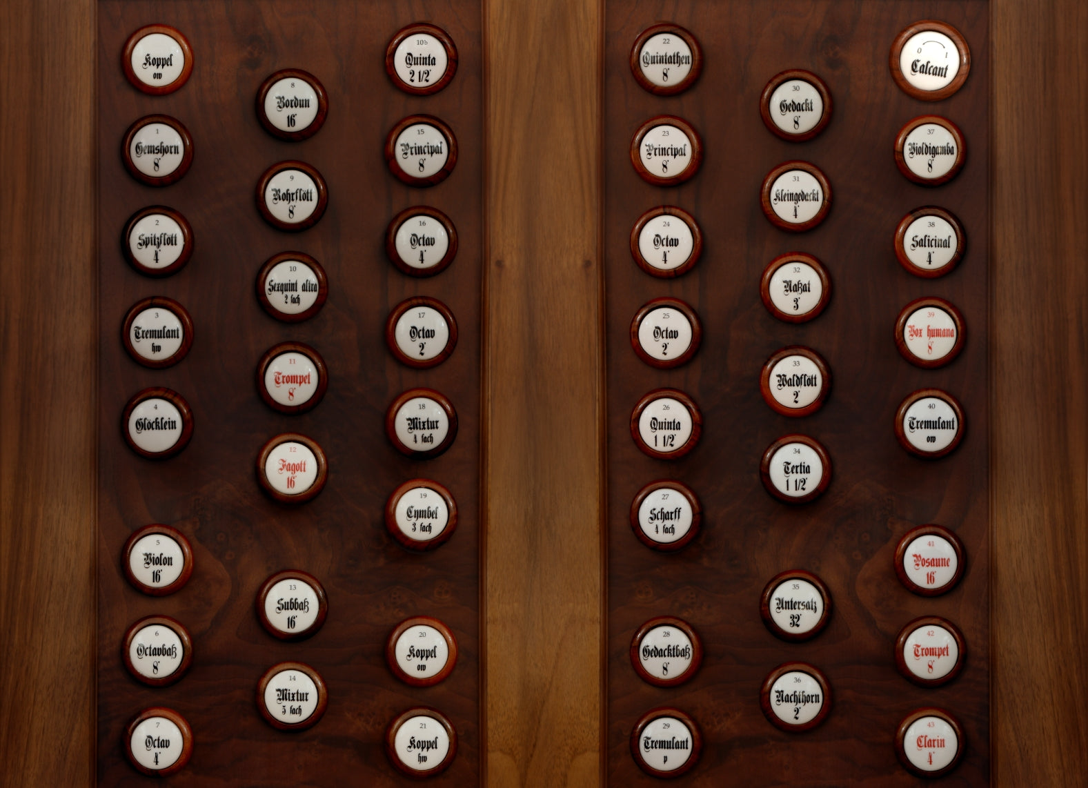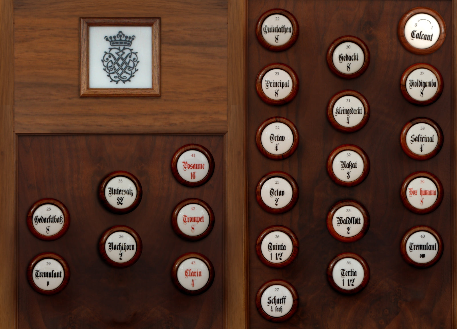 La tastiera originale dei manuali è di 56 tasti. La tastiera del pedale è di 30 toni.