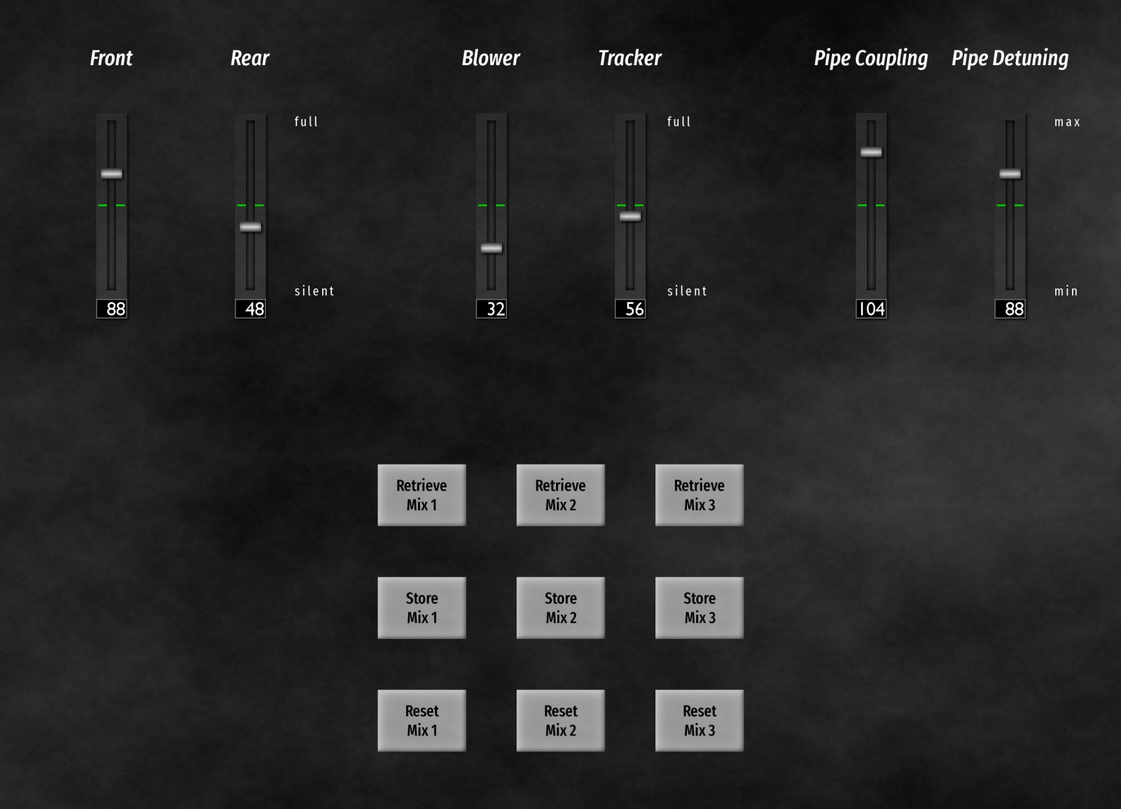 Secco: registrazione ravvicinata dei tubi all'interno del case dell'organo. I campioni sono presentati in stereo (48Hz/24bit) senza alcuna riverberazione, le code di rilascio contengono solo il breve suono della voce del tubo quando il pallet si chiude (i transitori di rilascio).