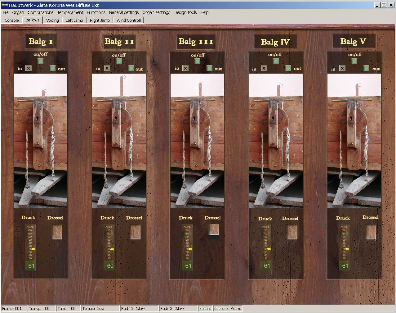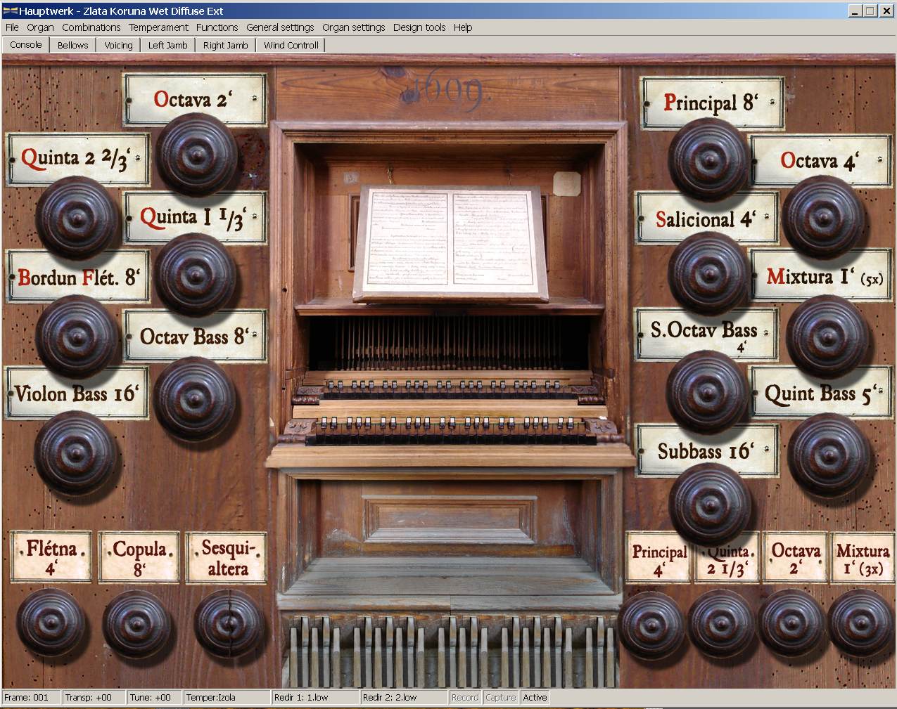 Sonus Paradisi ha avuto l'onore di registrare l'organo nel 2003. È stato uno dei nostri primi set di campioni. A quel tempo, la tecnologia consentiva la registrazione di qualità buona per la versione 1 di Hauptwerk di quei tempi. Nel 2009, ci è stato permesso di effettuare una registrazione completamente nuova, coprendo tutte le funzionalità avanzate di Hauptwerk 3, le molteplici uscite essendo la caratteristica più importante per la versione umida del set di campioni, ma anche realizzando una nuova registrazione secca per la versione secca del set di campioni. Entrambe queste versioni sono ora disponibili con il nome "Zlata Koruna v.2".
