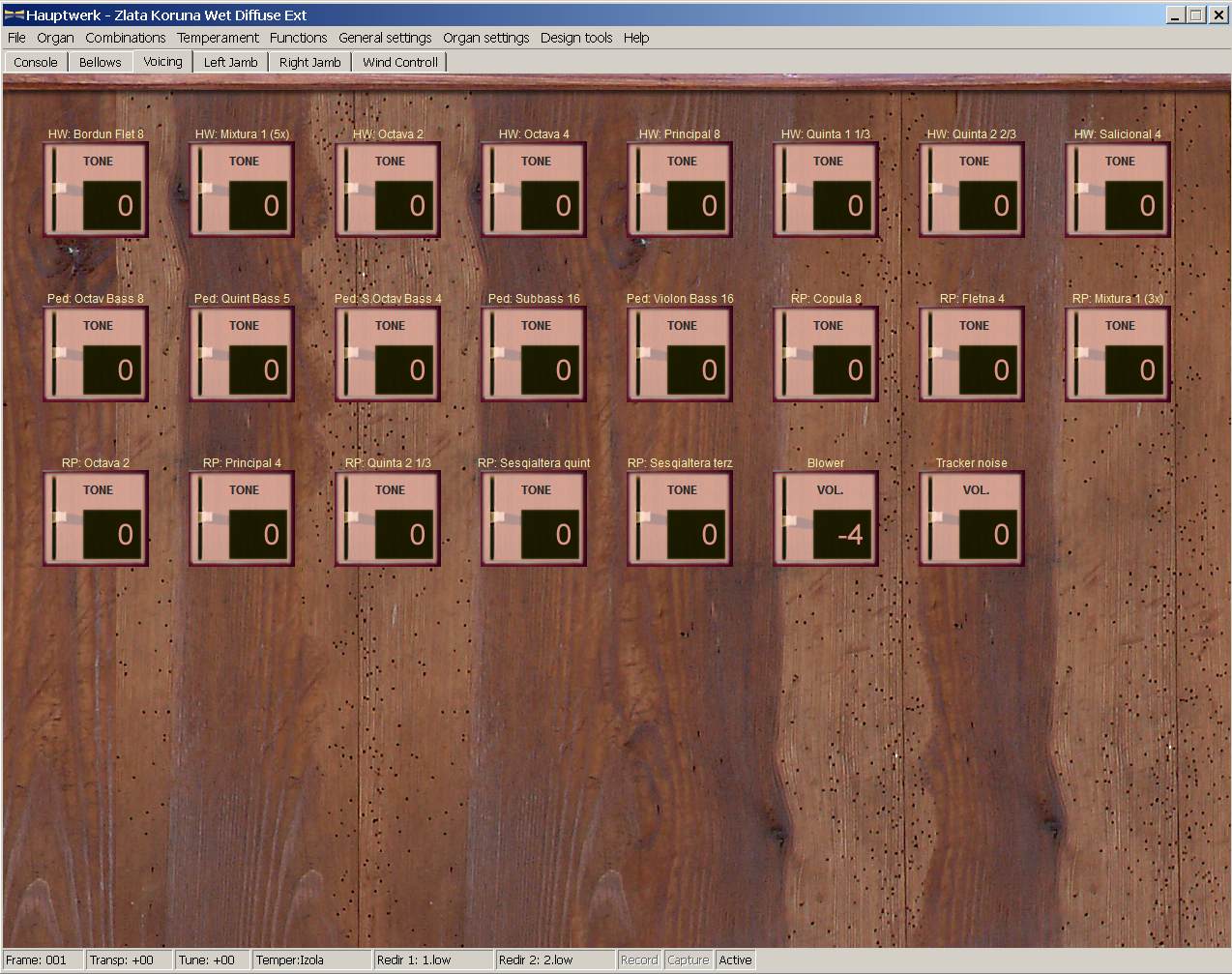Fornita una tabella di temperamento speciale per l'accordatura originale dell'organo.