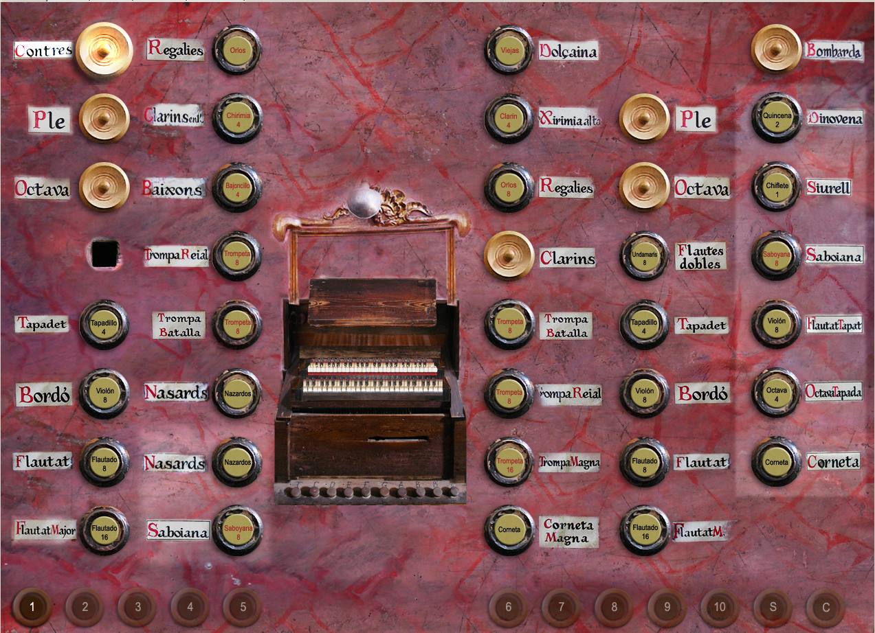 For more details about the stops available, you should consider reading the article on the historical registration on the Santanyi organ.